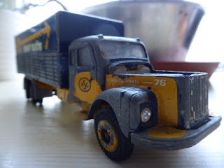 Det är väl just i detta skick man ibland kan finna gamla lastbilar ute i naturen men det här exemplaret har rullat otaliga meter i sandlådor och på golv i händerna på en liten parvel som verkligen uppskattat att vara lastbilschaufför.